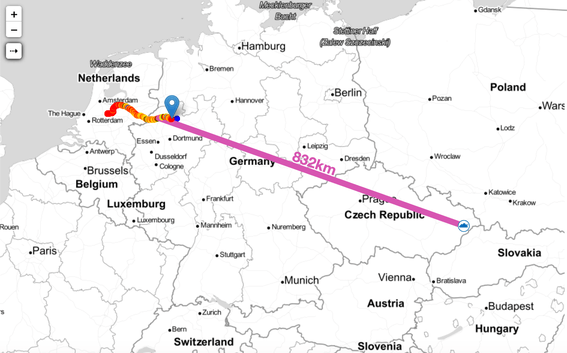 Отговорът е стотици км. В момента световният рекорд е от 832 km. Поставен е от Thomas Telkamp и неговият екип, между крайно устройство издигнато с балон и LoRa гейт върху телевизионна кула.