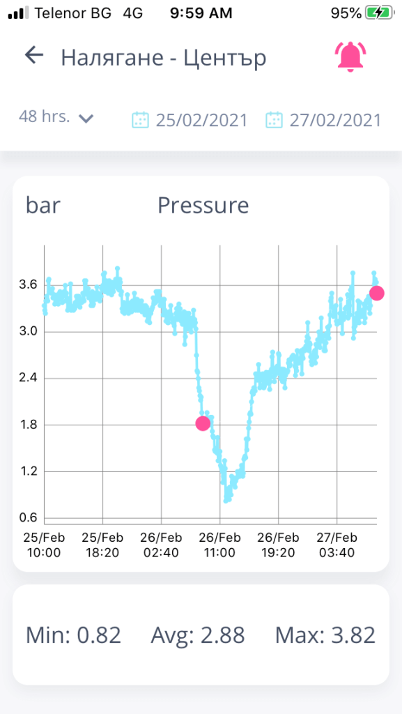 Pressure drop in water supply networks is a sure sign for lack of water in the pipes and this can cause issues for you and your stock. It is crucial to get an instant alarm notification and react fast.