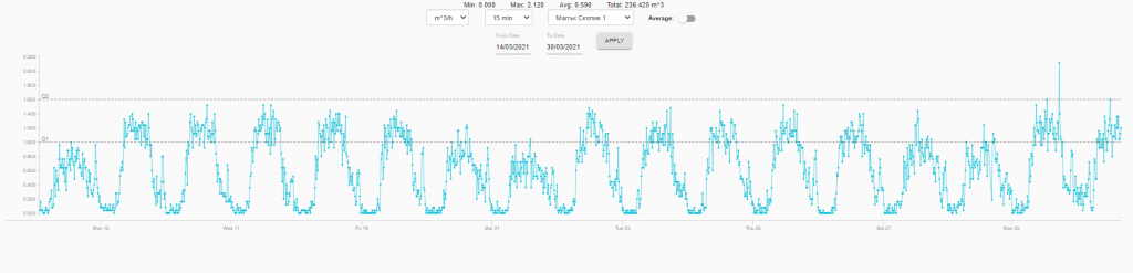 Based on the flow statistics reports Sofiyska Voda is able to determine is a certain water meter-sized correctly for the particular location or is too small (most of the water pass < Q1) or too large (most of the water flows over Q3 of the meter) for the purpose.
