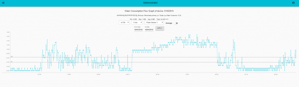 Lecture de débitmètre d’eau à distance – graphique des données