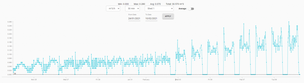 Generally speaking, the more water animals are drinking, the better they are doing. If water usage is lower compared to previous periods, it typically means the animals are eating less than before, resulting in slowed down growth. Possible reasons are extreme temperature changes at the house and/or animals are unwell and have gotten sick. This could be an incident with the drinker system or a hole in your tank. Regardless of the reasons, having a water monitoring solution capable of accurately measuring animals water usage is one of the best and most inexpensive methods of providing a farm manager an indicator of their livestock life conditions.