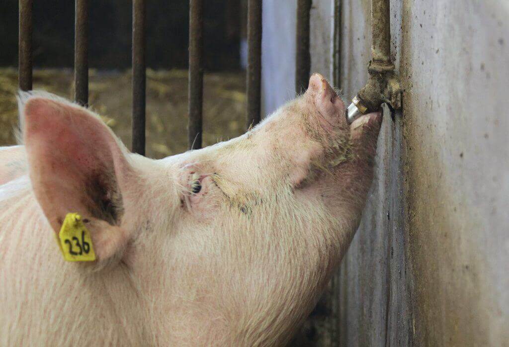 As per [4] “the average daily gain of all pigs is 0.70kg per day. Water consumption increased linearly, with a lower rate of increase as pigs neared slaughter weight. On average, pigs consumed (use plus wastage) 7.07 liters of water per kg of gain.” Also as per [4] “the average pen water consumption per pig in relation to observed symptoms of disease (as recorded by the health scores), showed a reduction in water consumption in pens in suffering from scour at a clinical score of four in week two of the trial.” So again, similar to chickens and cattle, reduced water consumption is a sign that something is happening with your pigs.